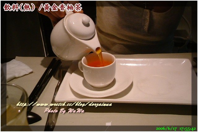 在吃主餐的時候,會有服飾生送上紫酥梅汁來解油膩![]()