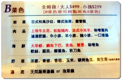 因為有分A菜色及B菜色~價格不同