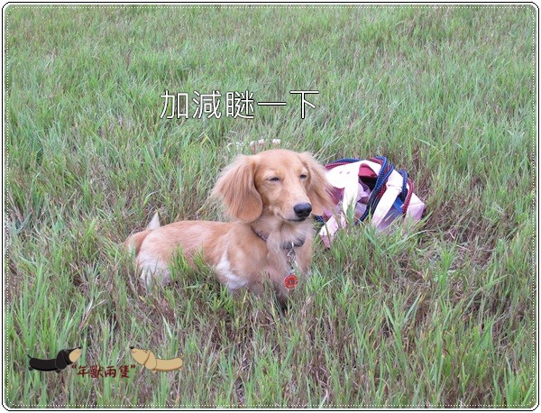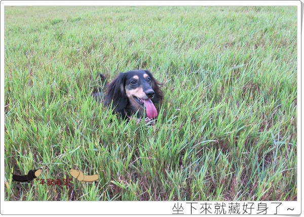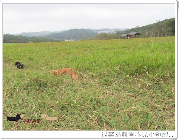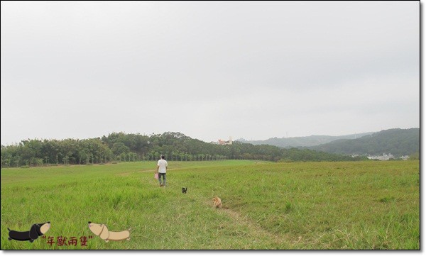只好就帶著狗運動~起身打算走到草皮下方再繞一圈上來(光想就累了)