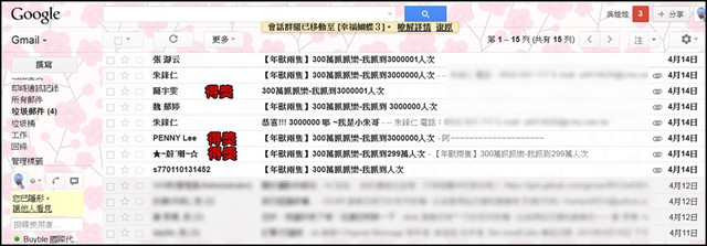 開獎結果~均已發mail通知囉